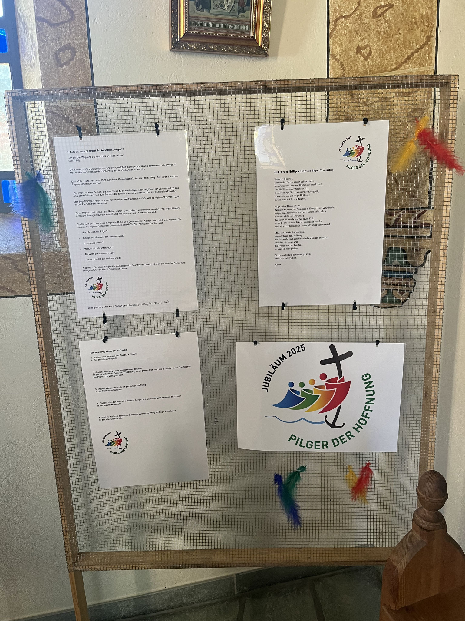 Zum Jahresthema passend "Pilger der Hoffnung" steht ein Stationenweg zum Thema "Pilger der Hoffnung" im Monat September 2035 in Bürchen an fünf verschiedenen Orten zum individuellen Begehen zur Verfügung.