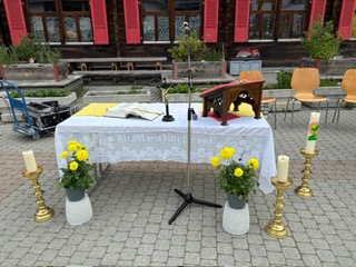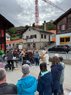 Zum Abschluss des Projektes "Ein Dorf bewegt" fand auf dem Pausenplatz am Sonntag, 25. Mai 2025 eine bewegte Messe statt, die sehr gut besucht wurde und ein voller Erfolg war. Der Kirchenchor sorgte für eine mitreissende musikalische Begleitung, welche die BesucherInnen zur Bewegung animierte. Auch Pfarrer Sylvester überzeugte mit einer engagierten und lebendigen Gestaltung der Messe.